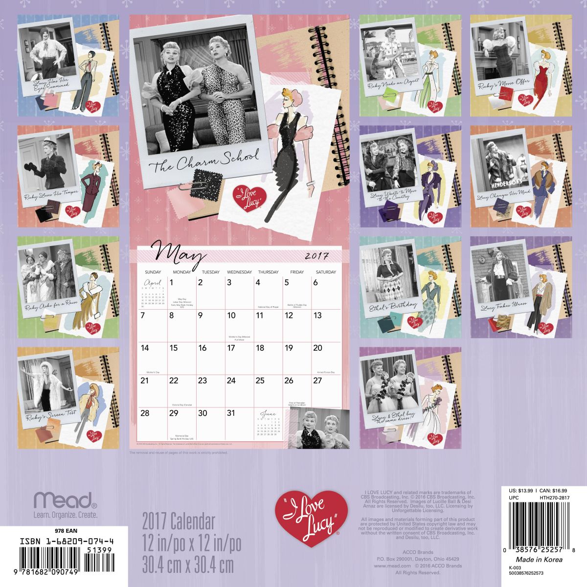 This stylish Lucy calendar boasts Lucy (and Ethel) in some of her more glamorous and memorable outfits. Each page notes the episode the image is from, as well as a colorized drawing of the outfit and fabric swatches.
