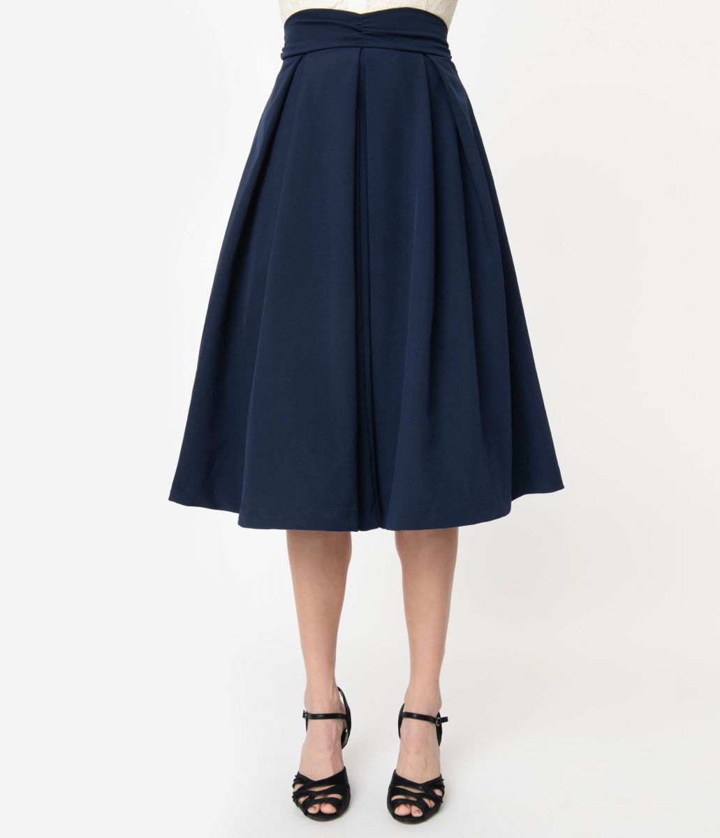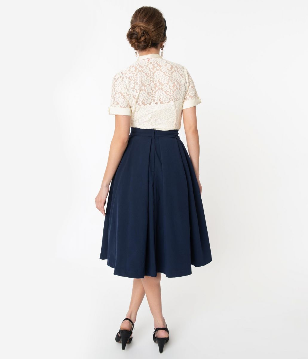 Introducing this amazing Lucille Ball vintage inspired clothing line by Unique Vintage! This I Love Lucy Hollywood Fashion Blue Swing Skirt will look breathtaking with just about anything. So versatile and stunning! This skirt goes perfect with the I Love Lucy Hollywood Ivory Fashion Lace Blouse Top. This outfit is inspired by the I Love Lucy episode, LA At Last. You will feel just as star-struck as you channel your inner most Lucy. This skirt is unlined with pockets and has a back zipper and hook. Material has no stretch.