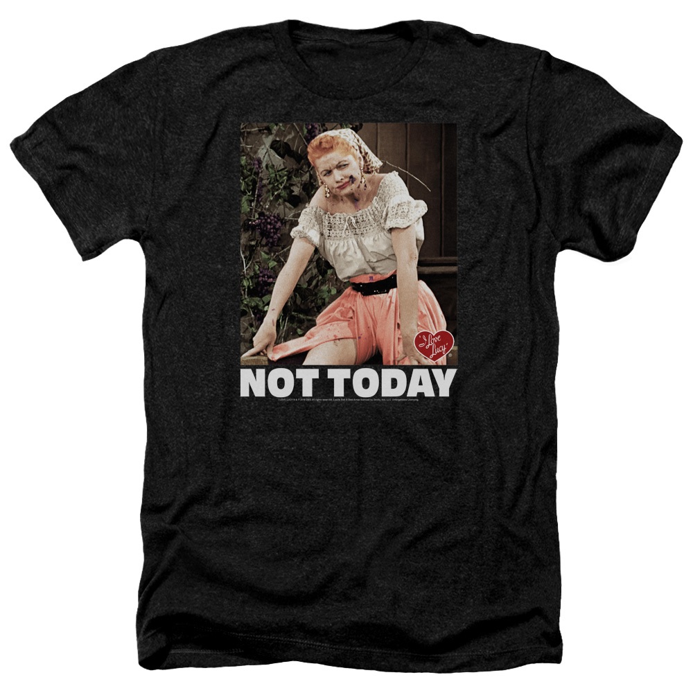 This I Love Lucy Not Today Adult T-Shirt is made from high quality 100% pre-shrunk cotton. This T-shirt has a traditional / classic fit. Features shoulder to shoulder taping, seamless 1x1 rib collar with two needle cover stitching on front neck and two needle hemmed sleeves and bottom. Fabric Weight 5.5 oz. **Double the width measurement to give you chest size** Tall Sizes in XL - 3XL