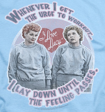 This I Love Lucy's Workout Women's T-Shirt is made from high quality, soft spun cotton and features a loose fitting cut for comfort. 100% pre-shrunk to minimize shrinkage. Double needle bottom hem / Fabric Weight 5.5 oz. **Double the width measurement to give you chest size**