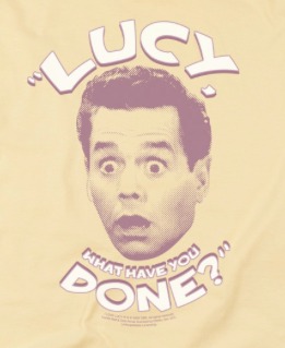 This I Love Lucy What Have You Done Ricky Adult Classic Fit T-Shirt features an image of a wide-eyed Ricky Ricardo and the saying, "Lucy, What Have You Done?" This I Love Lucy T-shirt is made from high quality 100% pre-shrunk cotton. This T-shirt has a traditional / classic fit. Features shoulder to shoulder taping, seamless 1x1 rib collar with two needle cover stitching on front neck and two needle hemmed sleeves and bottom. Fabric Weight 5.5 oz. **Double the width measurement to give you chest size**